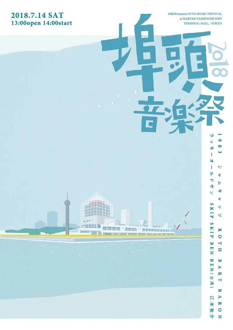 1983主催のイベント「埠頭音楽祭2018」メインビジュアルのアートワークを担当しました。変わりゆく晴海埠頭の風景を描いています。> POSTに詳細を書きました